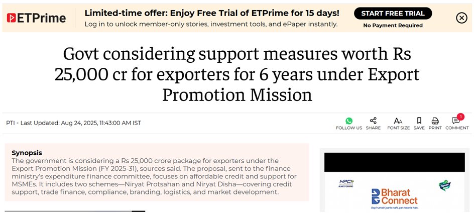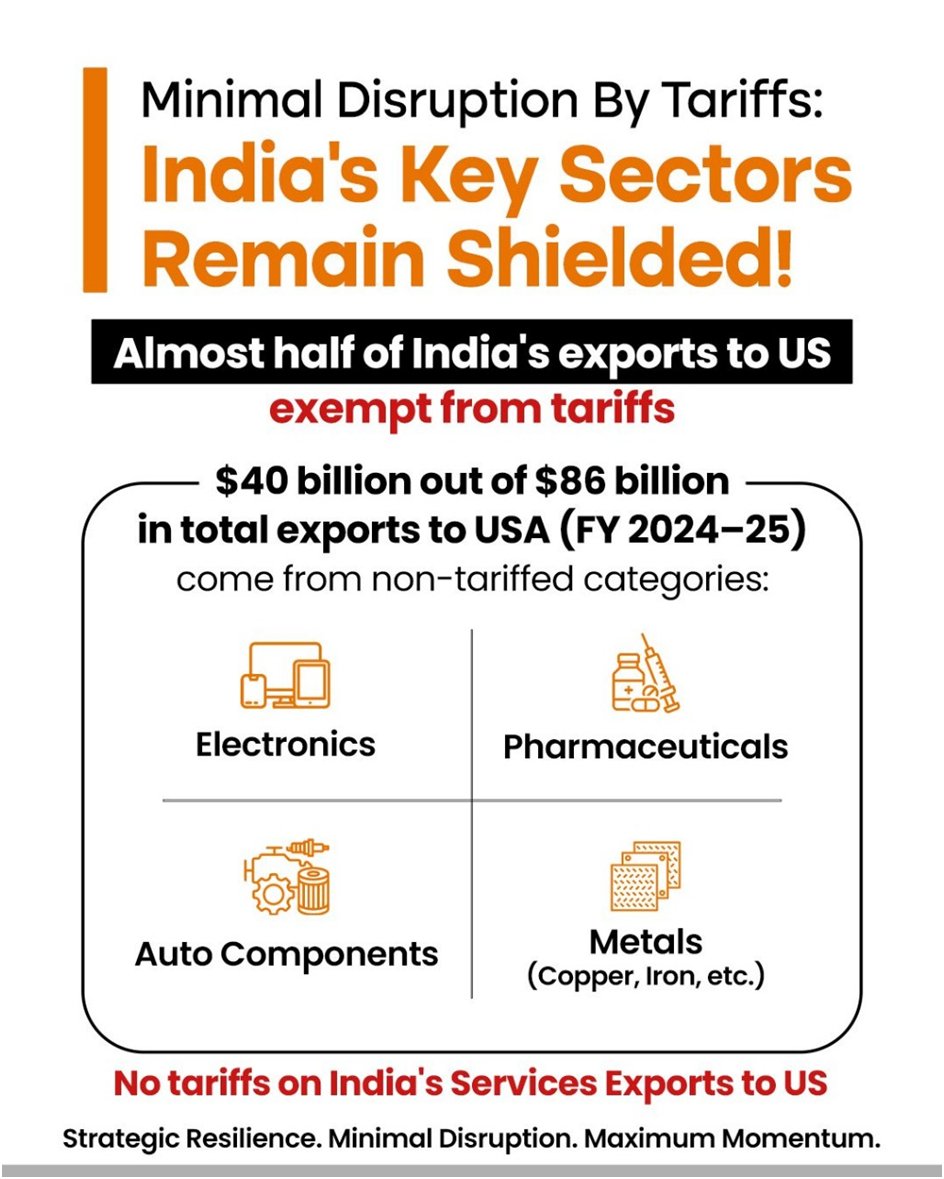Modi Govt is also rolling out Rs 25,000 crore export-promotion schemes. This multipronged strategy ensures any US tariff impact remains limited and short-lived.