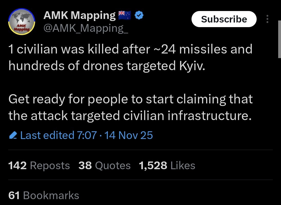 According to him when a few Ukrainian civilians die in air strikes, the low numbers prove it was Ukrainian air defence, when many civilians die, the opposite is not true - there is no criticism of Russia.