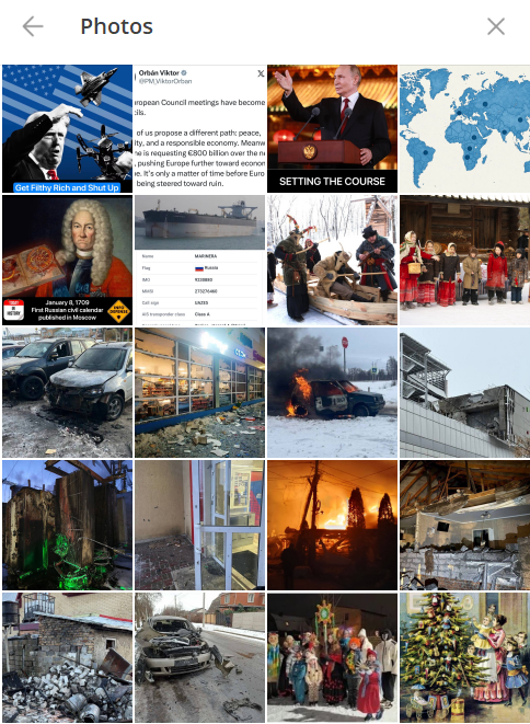 The Eng. lang. channel almost exclusively posts news about Russia or it's war in Ukraine, occasionally attacking the US or UK over e.g. "demographic change".
