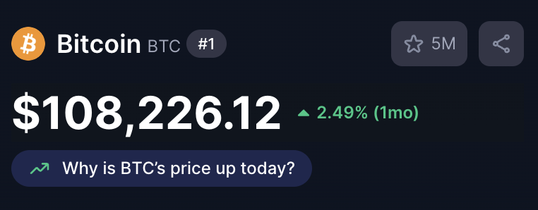 Bitcoin just broke back above $108,000.