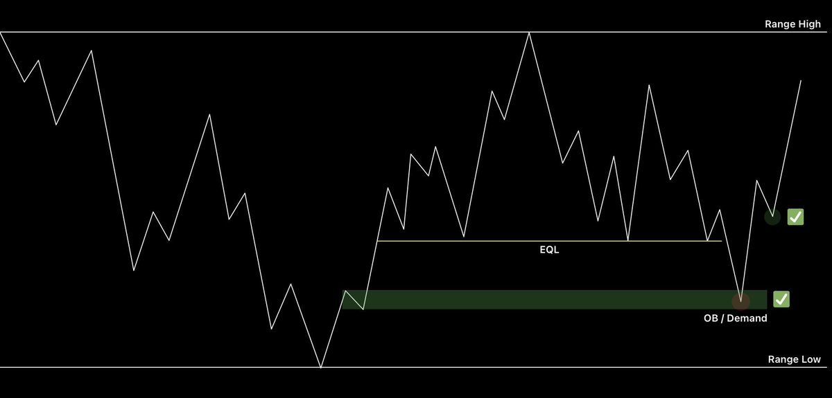 Active Liquidity: Wait for the price to reclaim the range pivot after the sweep. This is a much safer, more confident entry. By waiting for confirmation, you are entering with the new momentum, not against it.