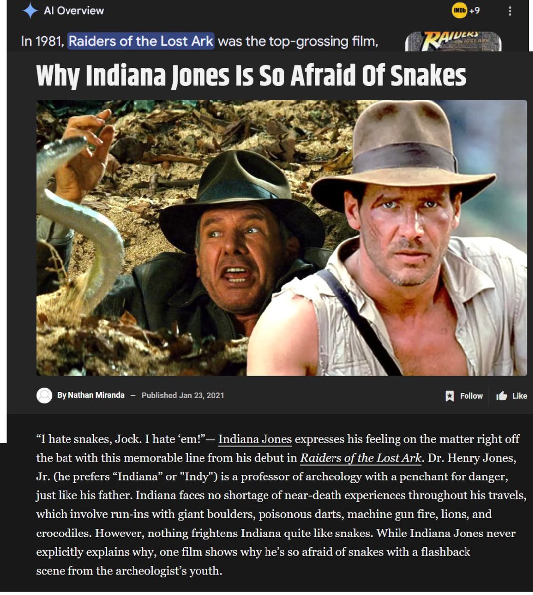 06/12/1981 Raiders of the Lost Ark: Famous SNAKES