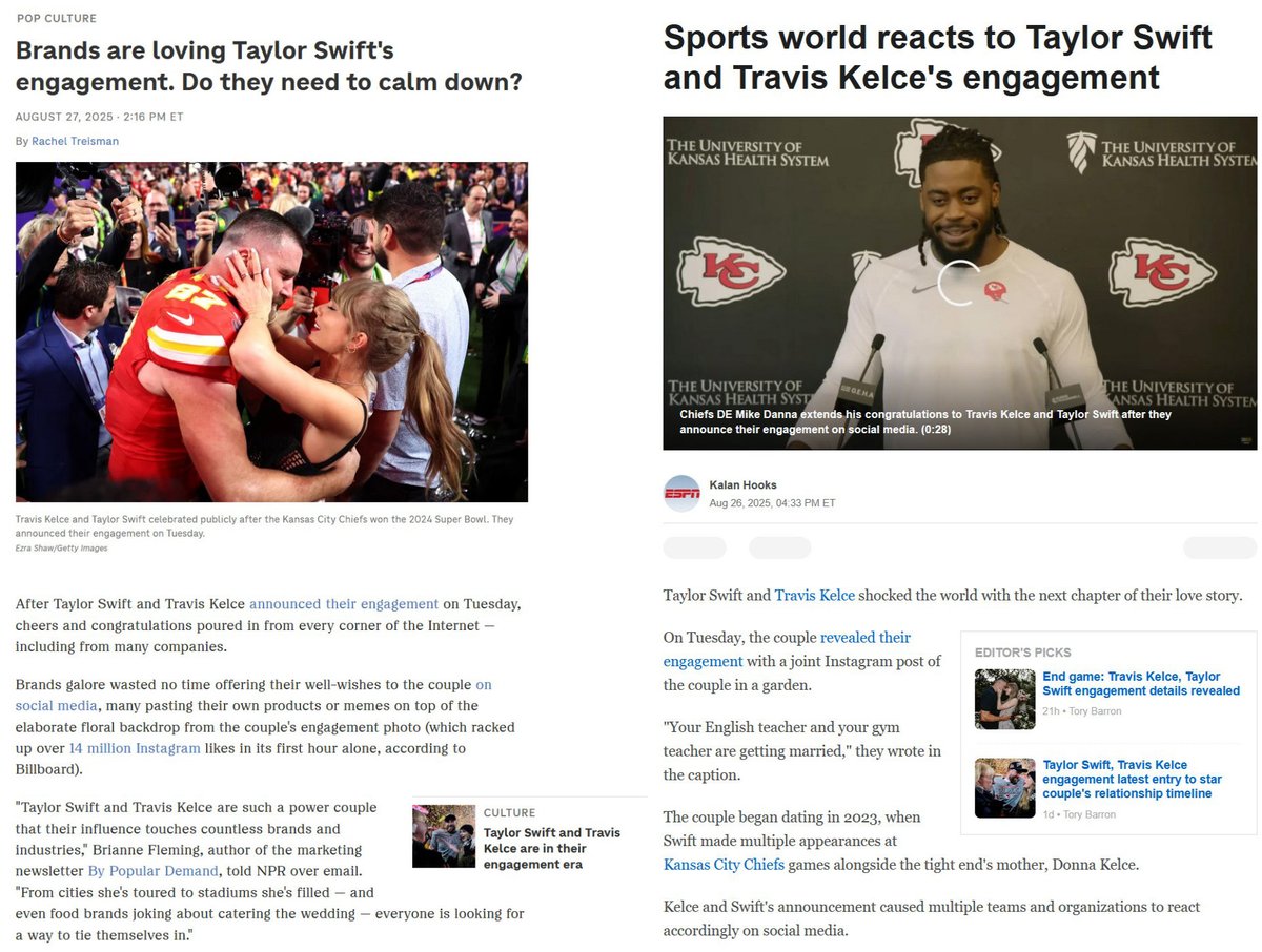 Travis Kelce + Taylor Swift Engagement Decoded 1. The news of this engagement is so pervasive there are articles discussing whether people need to calm down about it.