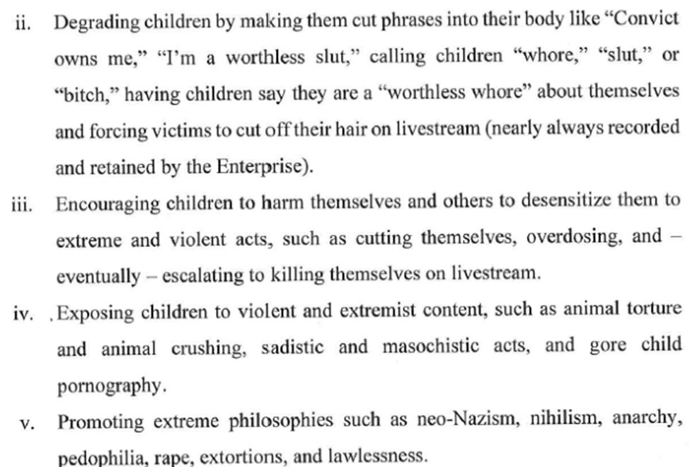 Martin allegedly authored a manual and distributed it to other 764 members to teach then how to groom, psychologically manipulate and extort child victims. He taught to target children online with pre-existing eating disorders and tendencies to self harm.