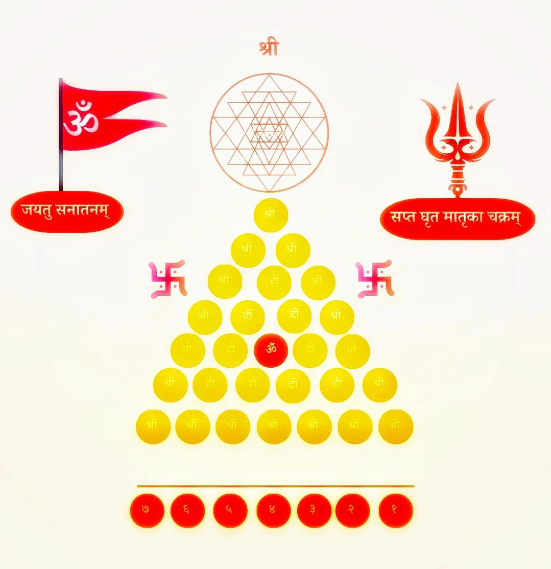 Together, it is a sacred yantra-like ritual invoking Sapta Matrikas - the Seven Mother Goddesses who guard the universe