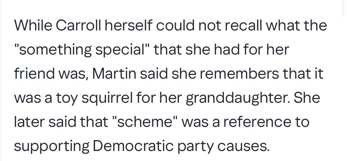 The main witness, Carol Martin, texted her daughter that E. Jean Carroll was a drug addict and that the drug was herself.