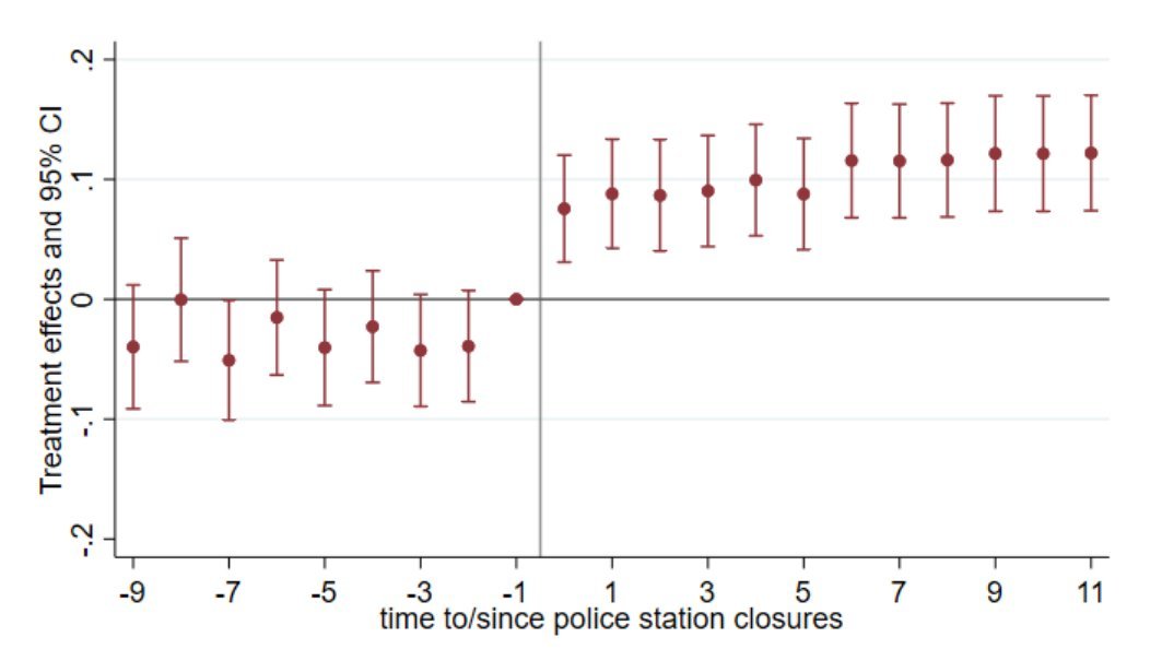 In fact, the closer an area was to a police station that got shut down, the greater the increase in crime.