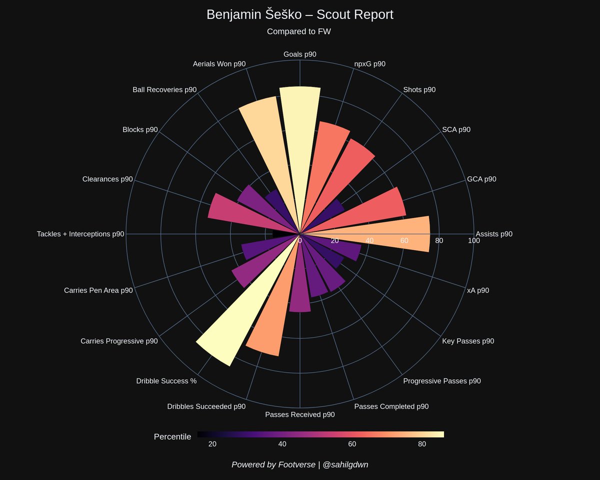 Sesko is a 22yo Slovenian striker who has played 2 full seasons at Leipzig after his Salzburg rise. Already 251 senior appearances with 106 goals for club and country. Has made the Austria → Germany step seamlessly and kept improving.