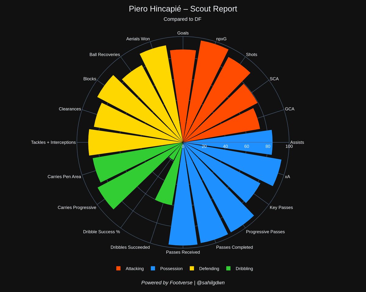Known for his physicality, aggression, and proactive defending, Hincapie often pushed high to track his man in Xabi Alonso’s system. On the ball, he shows progressive passing from wide channels, composure in buildup, and willingness to step forward, traits Arteta will value.