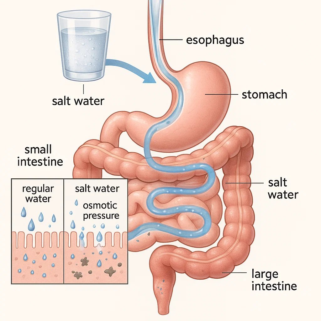 Salt water flushing is the most efficient gut cleanse you can do at home.