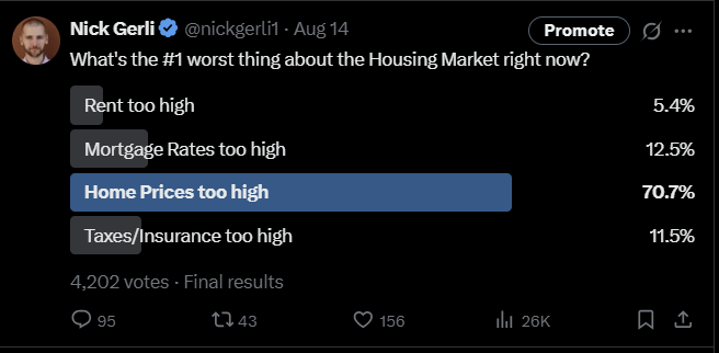 I also polled you here on X, and 71% of you said prices were the problem.
