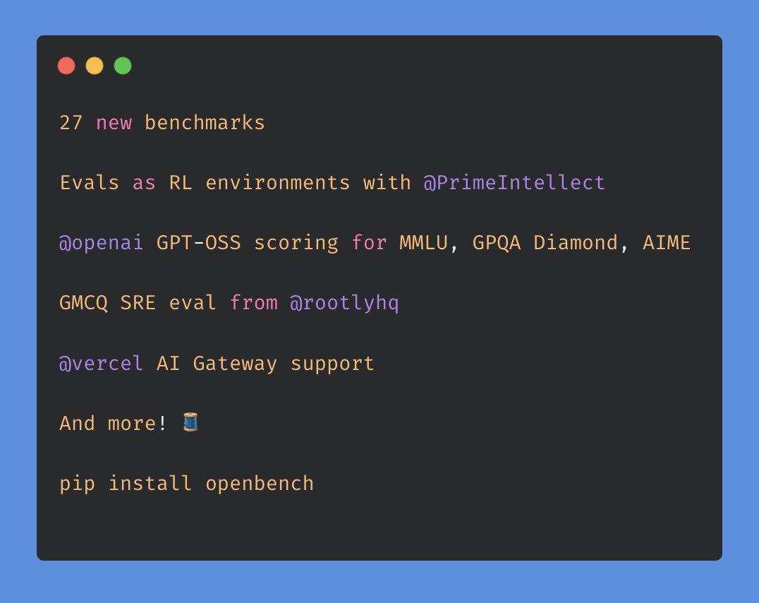3/ OpenBench already had first-class support for @OpenAI, @AnthropicAI, @GroqInc @GoogleDeepMind, and others -- and now we’ve expanded it to include: