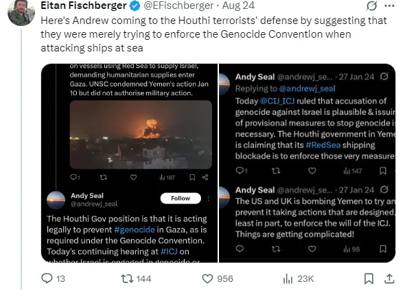 @EFischberger exposed a key IPC author openly supporting terror targeting Israelis. @HillelNeuer showed he shares IRGC propaganda, pushes anti-US conspiracies & even excused Iran’s killing of 176 civilians. A nutcase who backs the Houthis & Iran’s regime.