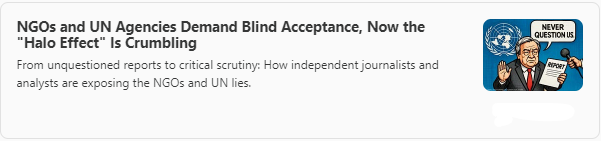 Never question the UN or big NGOs is the unspoken rule. The “Halo Effect,” the aura of credibility surrounding these organizations—means that their findings were virtually immune to fact-checking and often amplified by the media.