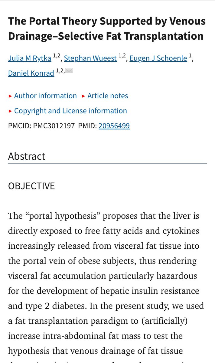 The Portal Hypothesis explains how this might lead to hepatic insulin resistance.