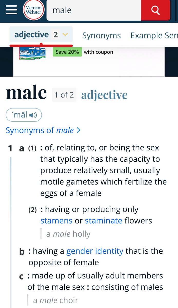 While everyone was out here arguing over the definition of woman, Merriam Webster snuck in and stealthily changed the definition of female. So even if they lose and say a woman is an adult human female, they have taken over that too.
