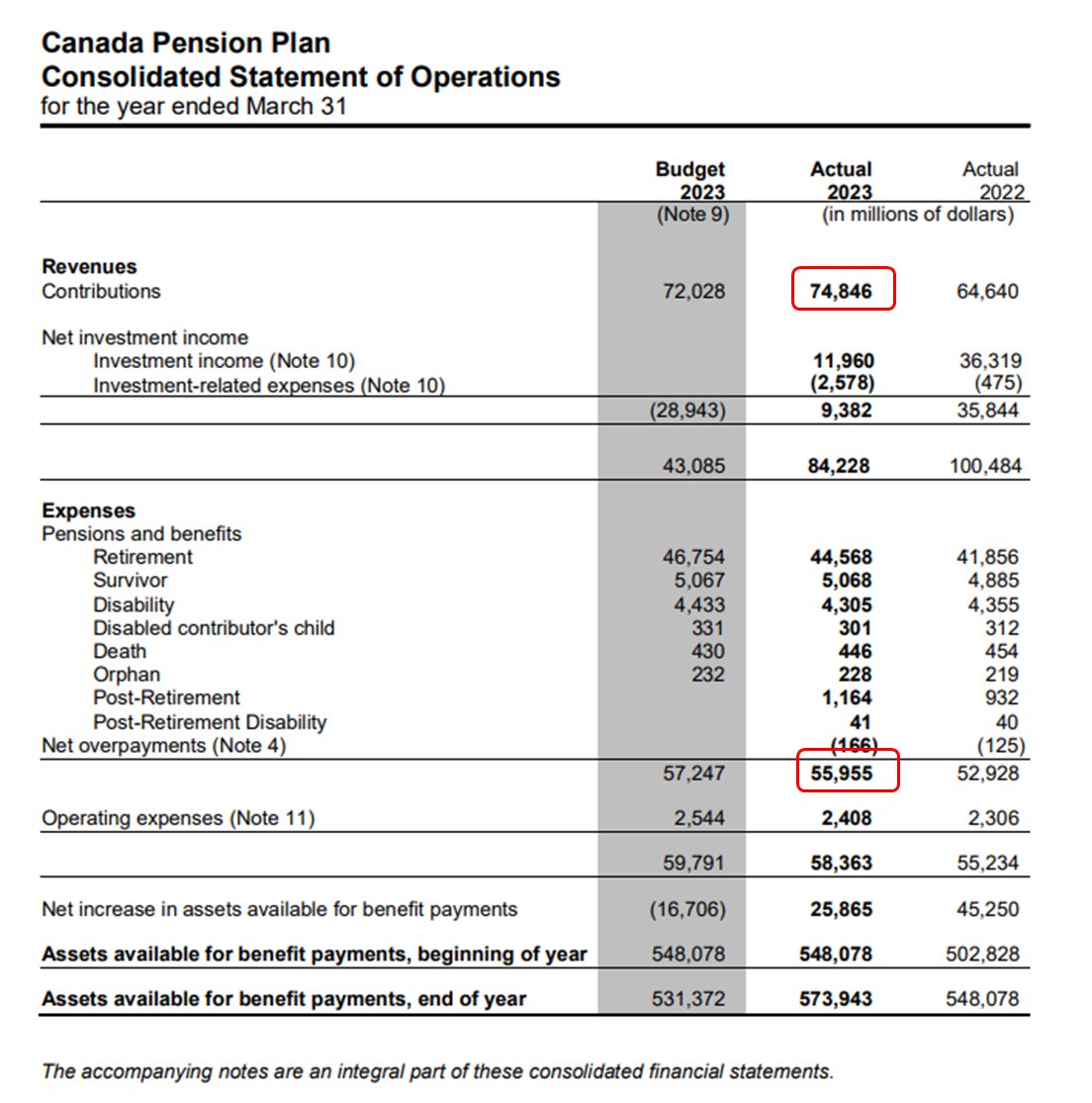 The most recent Canada Pension Plan report is from the fiscal year 2022-2023. Let's take a look at the data.