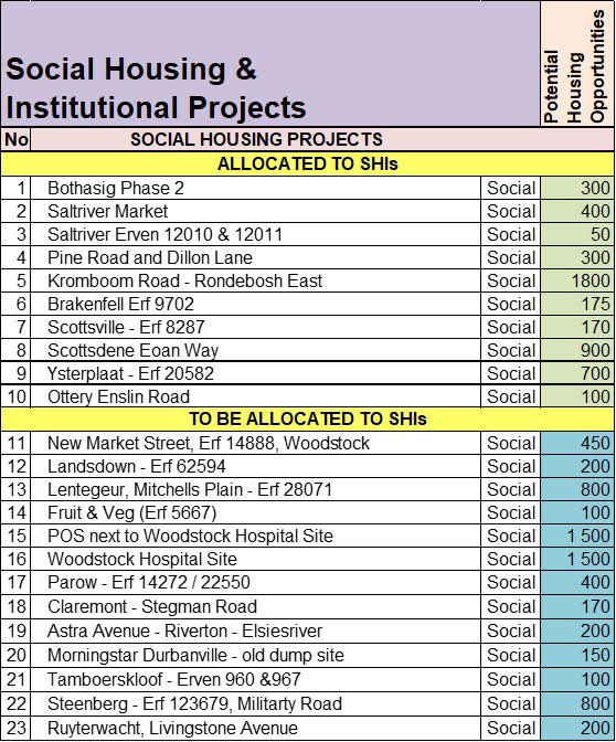 In 2017 the City of Cape Town released a prospectus which identified 11 City owned sites for affordable, social & transitional housing.