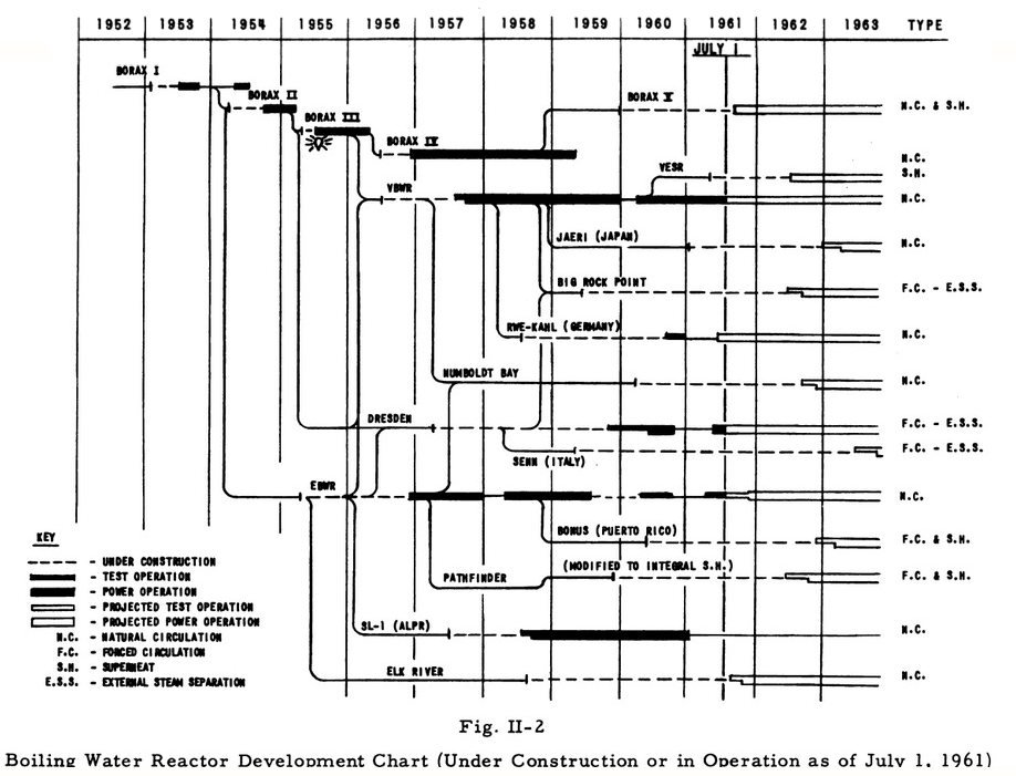 Dozens of even more exotic and high performance reactors were built as well, like the insane HTREs, UHTREX, NERVA, LAMPRE, etc. We had organic-cooled reactors. We operated reactors on flying aircraft (the ASTR) and in space (SNAP-10A). The current fleet is not really old-fashioned at all compared to other reactor types. From another perspective, the operating workhorse reactors (mostly PWRs, BWRs, & CANDUs) have advanced far more than the other designs thanks to their hard-earned operational experience and learning.