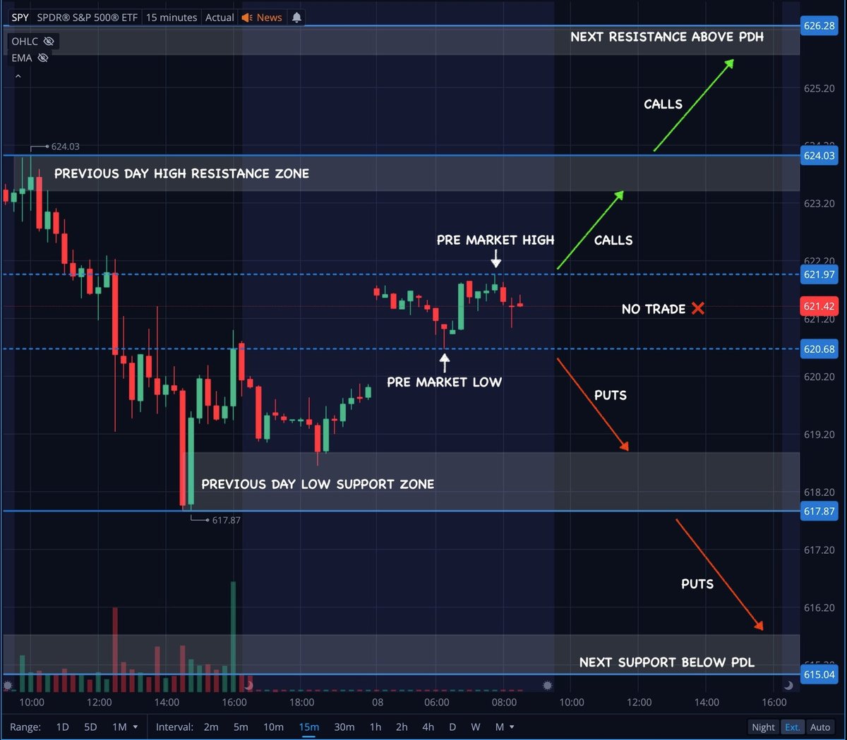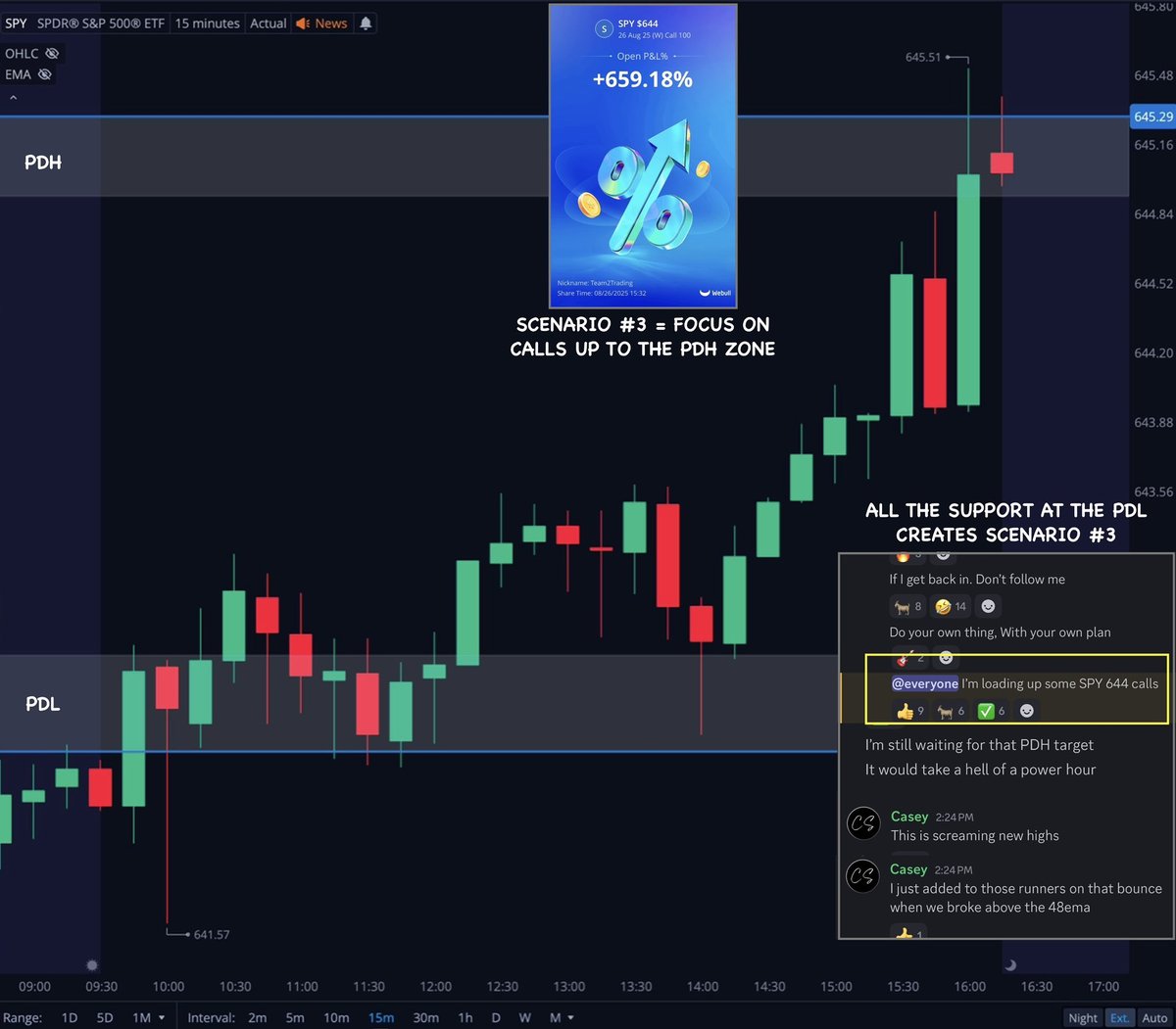 Again, refer to the guides above. Below PDL in a bearish EMA trend = Full size on puts 👇