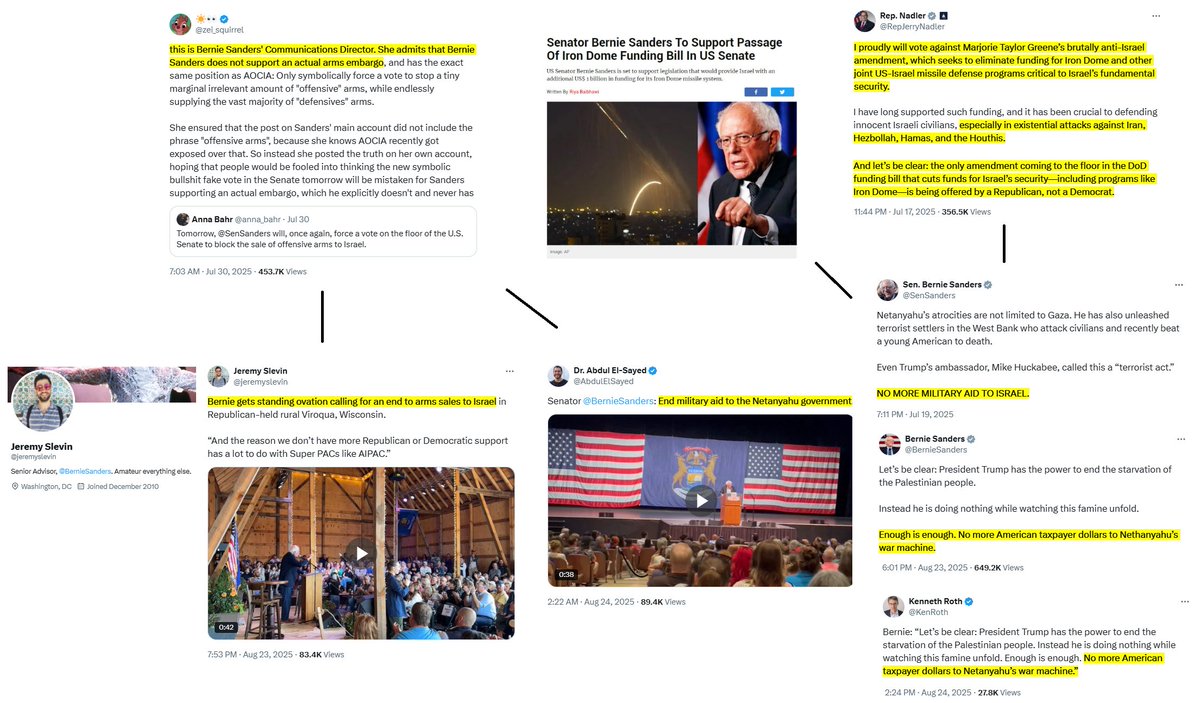 Why are you lying to your own followers about Bernie Sanders' actual position, instead of using your huge platform to expose him for the liar he is, and PRESSURING HIM TO ACTUALLY RECOGNIZE THE GENOCIDE AND SUPPORT AN ARMS EMBARGO AND SANCTIONS?