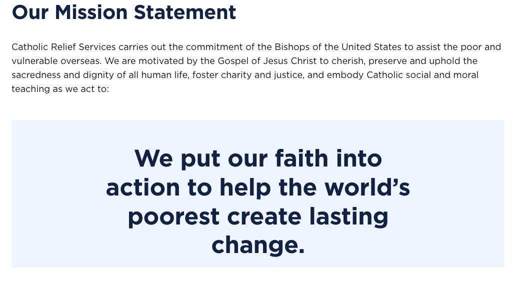 9/Mission statement, Catholic Relief Services
