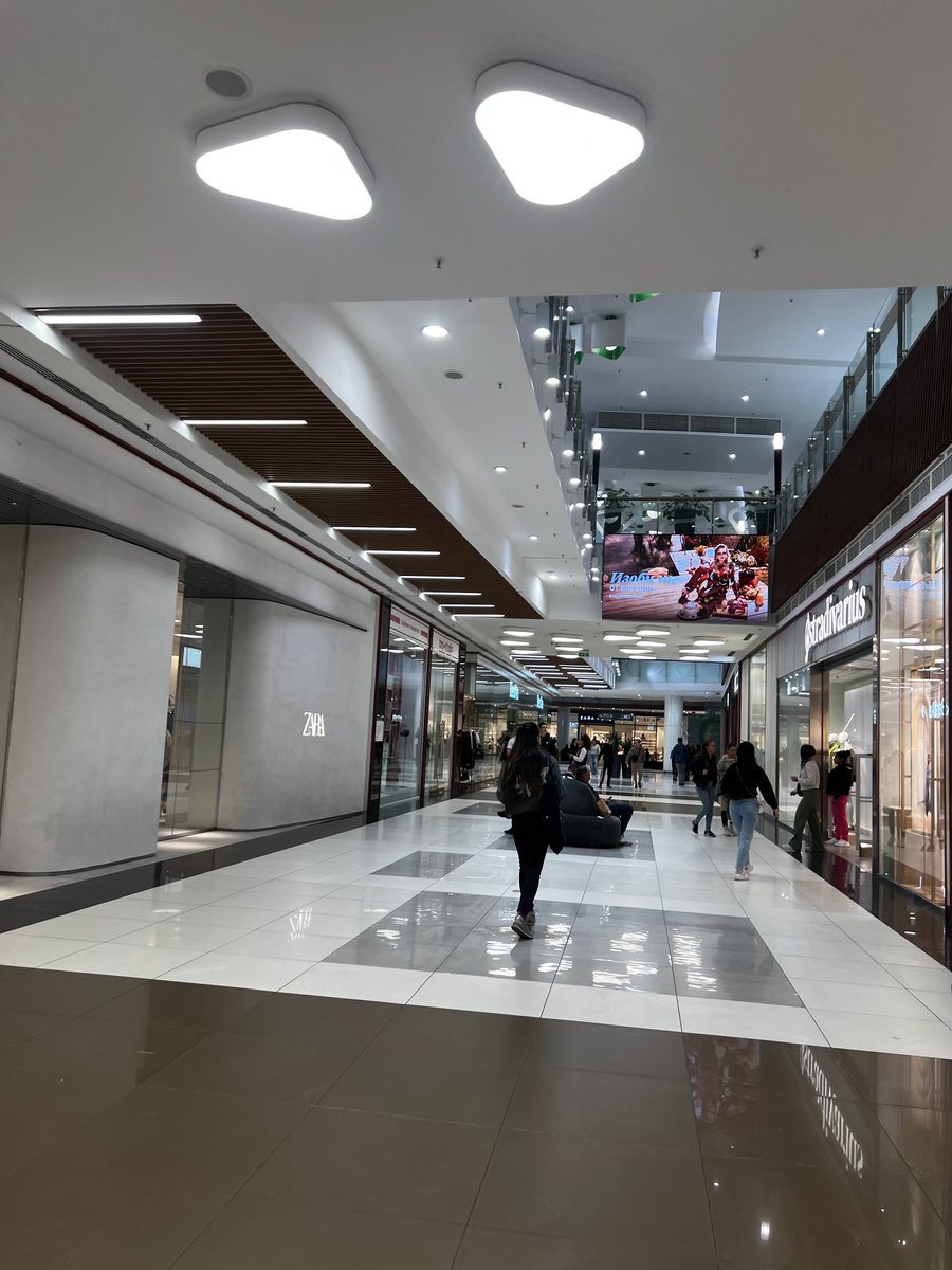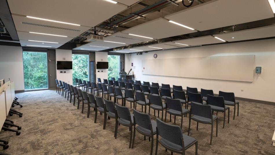 Grey carpets, white walls, harsh lighting.