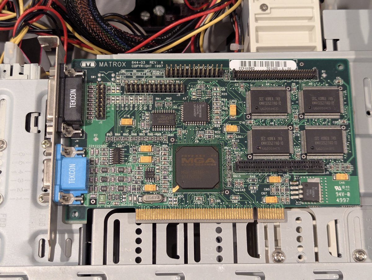 I have a Matrox MGA PCI card. Sadly, we're getting the beeps of death. I will try this on another PC later though just to confirm. Fail, for now.