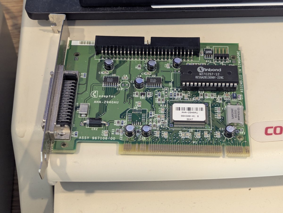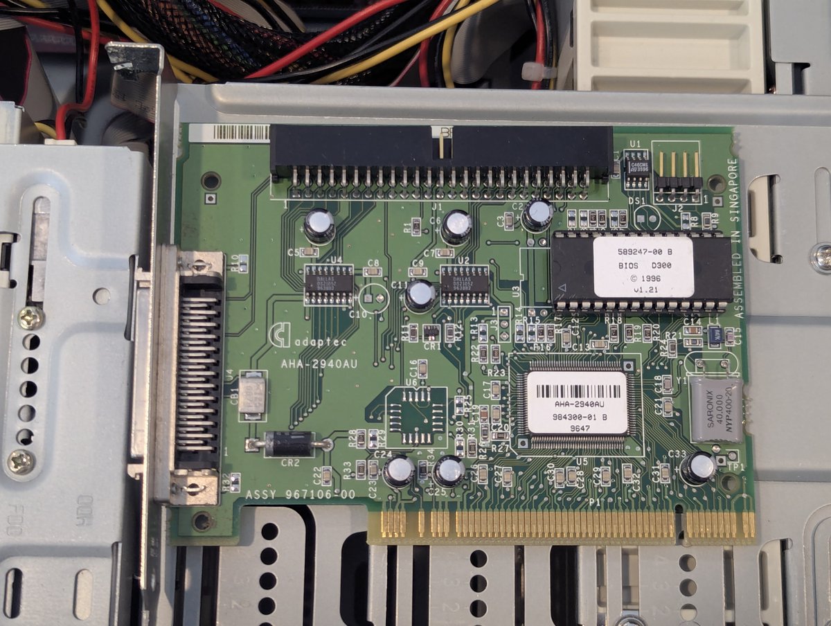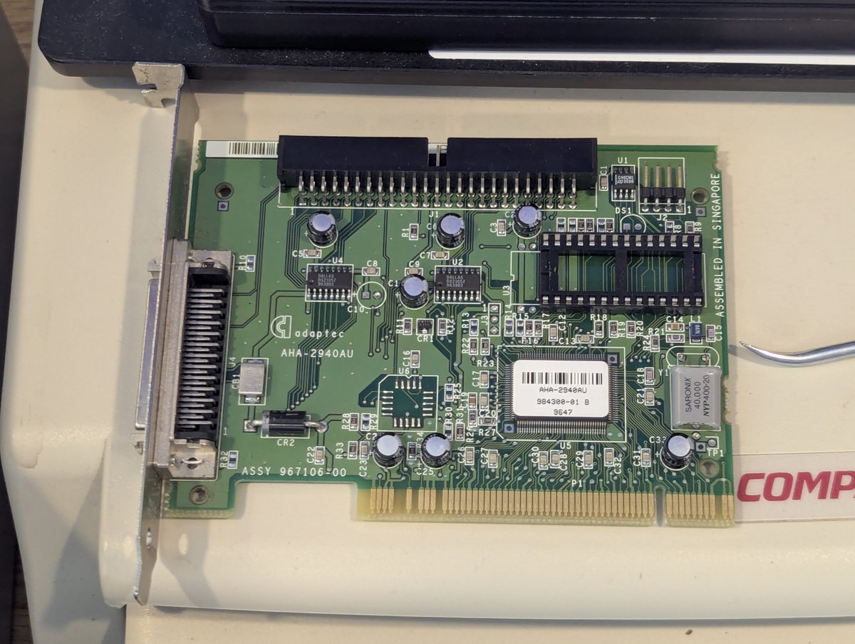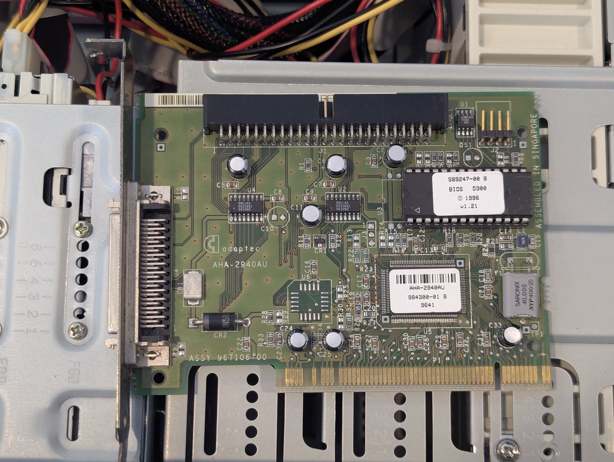I have two Adaptec AHA-2940AU PCI SCSI cards. We'll test these out with a 4GB Seagate Barracuda drive!