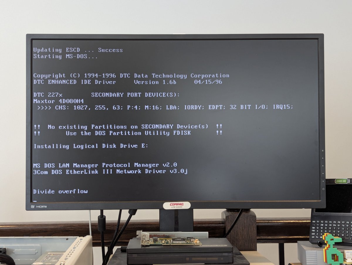 So, anyway, the issue I had with this laptop is that the original 20MB 3.5" IDE hard drive had died. I thought "no problem, I'll pop on eBay and get one." Except they are scarce and expensive. I picked up two 120MB drives and one 40MB drive. None of them worked.