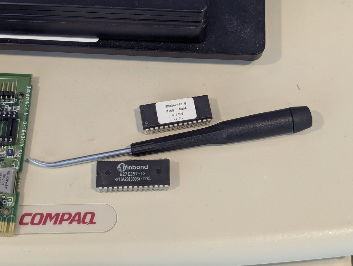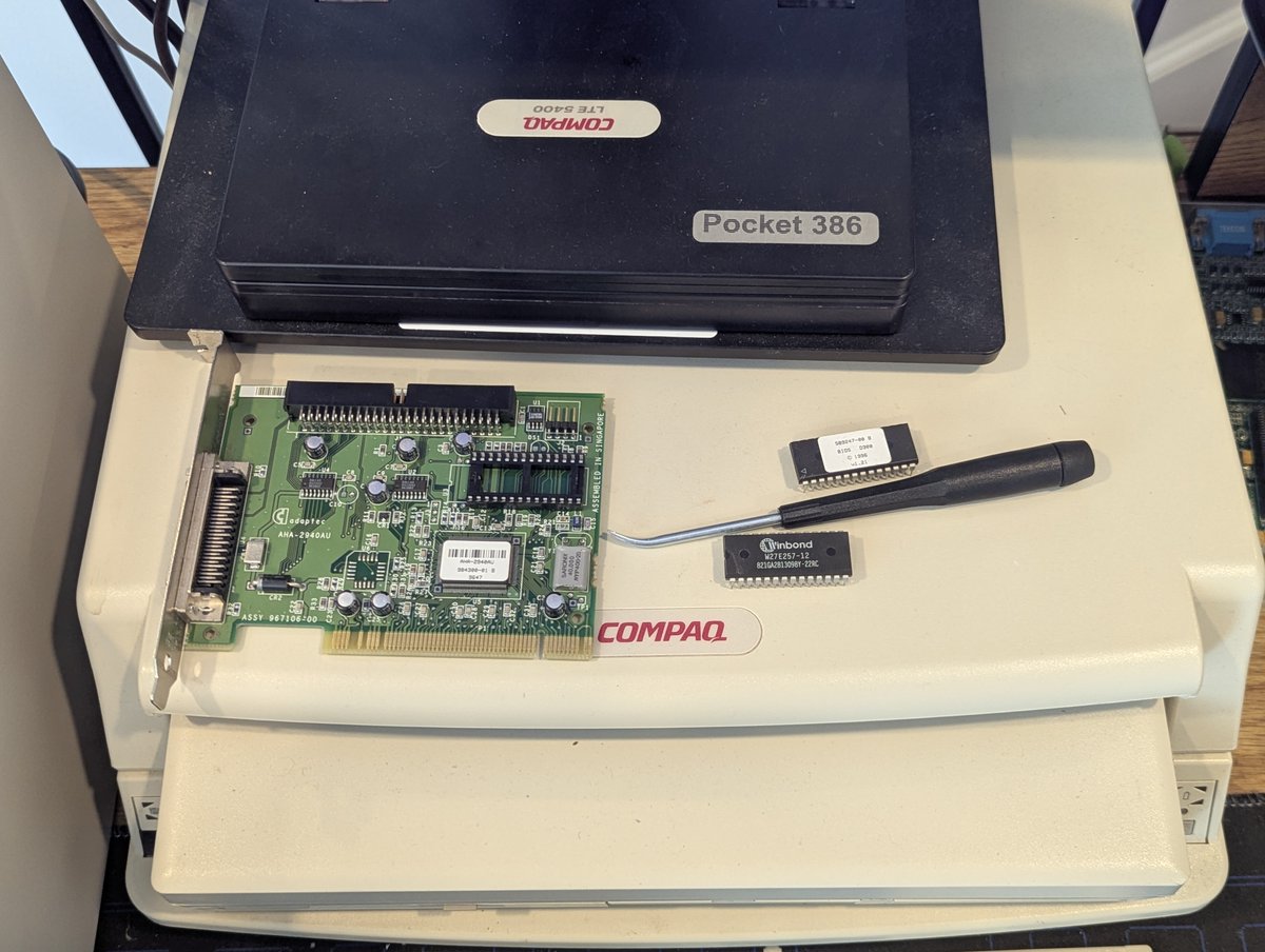 The challenges and solutions in retro computing never cease to amaze me, and today's project is no different. Today's goal was getting working storage in this AST Premium Exec 386 laptop. And fortunately, somewhat against the odds, I found one! Let's talk about it in a 🧵 here!