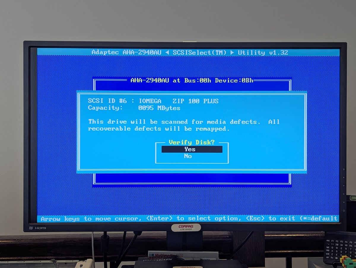 I'm happy to report it works great! I took the opportunity to verify the red Zip 100 disk that lives in this PC. And, not surprisingly, it had some bad blocks. But the SCSI utilities relocated them for us. Great!
