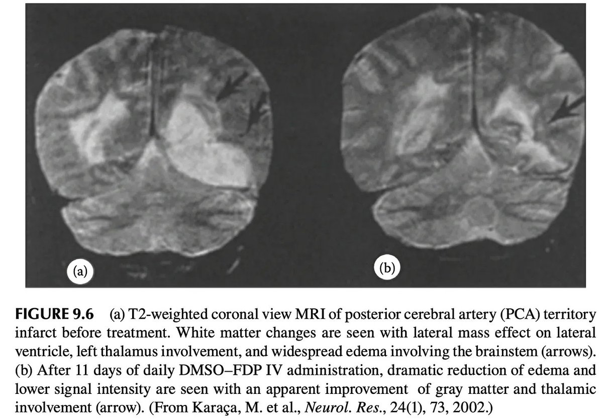 @MidwesternDoc A small human trial showed giving DMSO with FDP (fructose diphosphate) to stroke patients within 12 hours led to 63% of them improving—triple the rate of standard care.