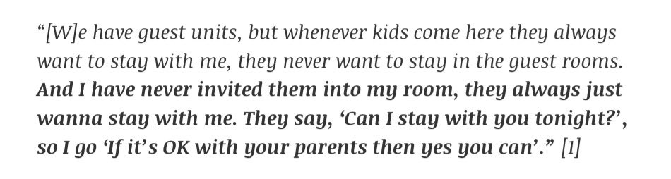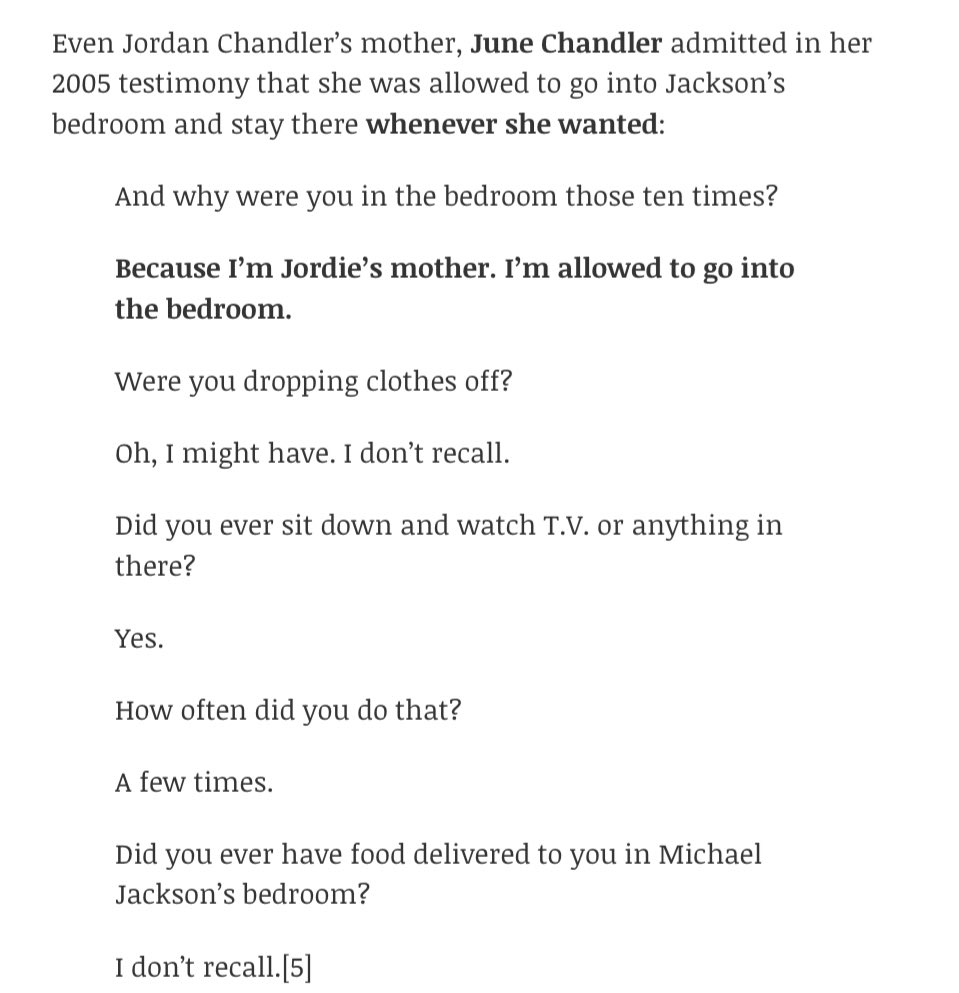 It’s understandable why this raises eyebrows, this wasn’t the wisest decision Jackson allowed. However he DID NOT ask to sleep in bed with children. Here’s what he actually said. Parents have said they were allowed in his room Jackson’s words. And to clarify but Jackson meant by “bed sharing” is giving up his bed for others to sleep in while he sleeps on the floor.