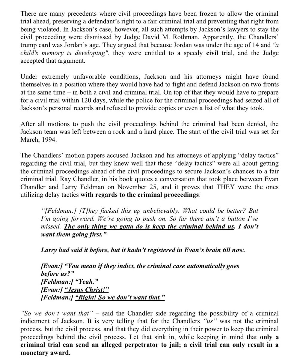 “But why settle?” Due to California’s law at the time where a civil suit could go ahead criminal trial. MJ’s team tried 6 times, got denied. Settlement was made so Jackson could have a fair trial. Further explained here (READ PIC DESCRIPTION TOO):👇🏾 In case you don’t know. Ray Chandler is Jordan Chandler’s uncle. Evan Chandler is Jordan Chandler’s father.