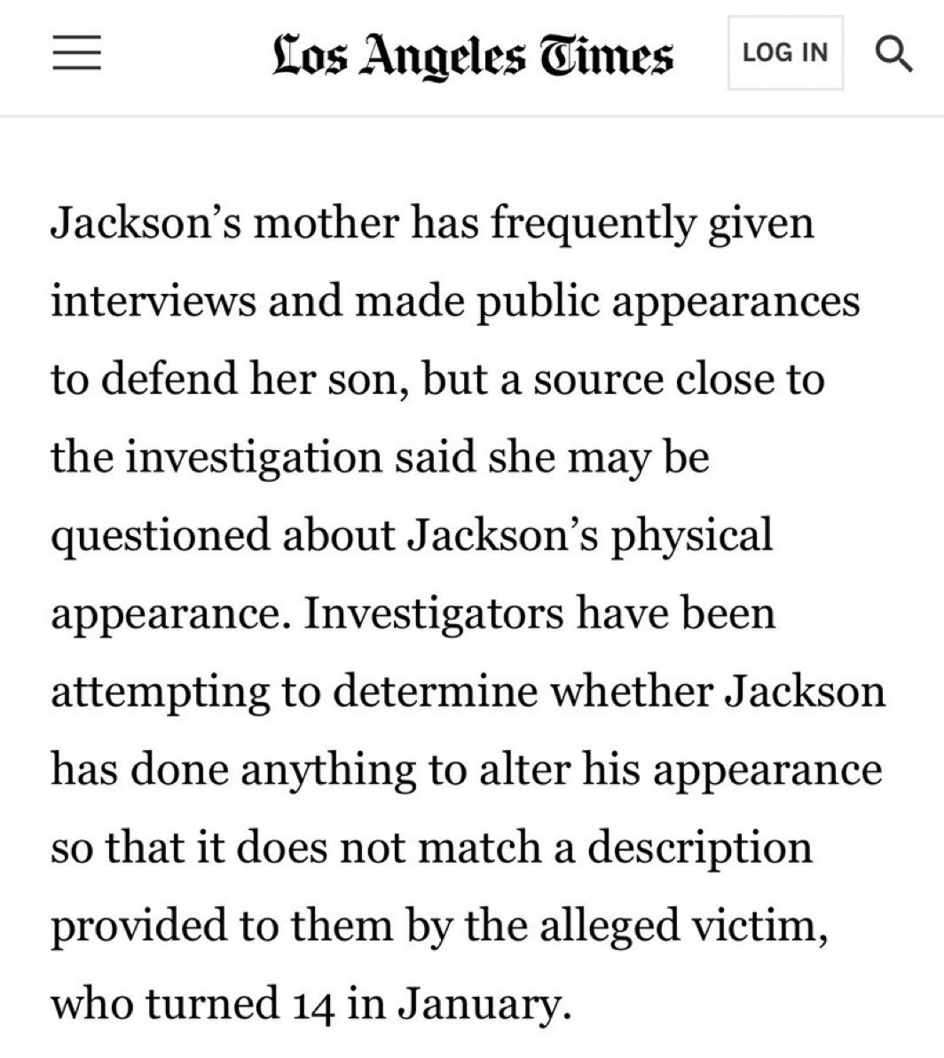 False. If it did, MJ’s mother wouldn’t need to be asked if she possibly knew anything about her son altering his genitals. Image