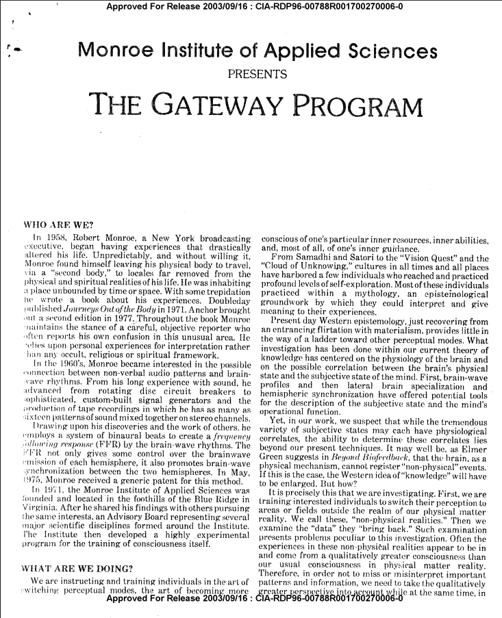 In 1978, they began collaborating with Monroe’s lab under a secret program called “Project Gateway.”