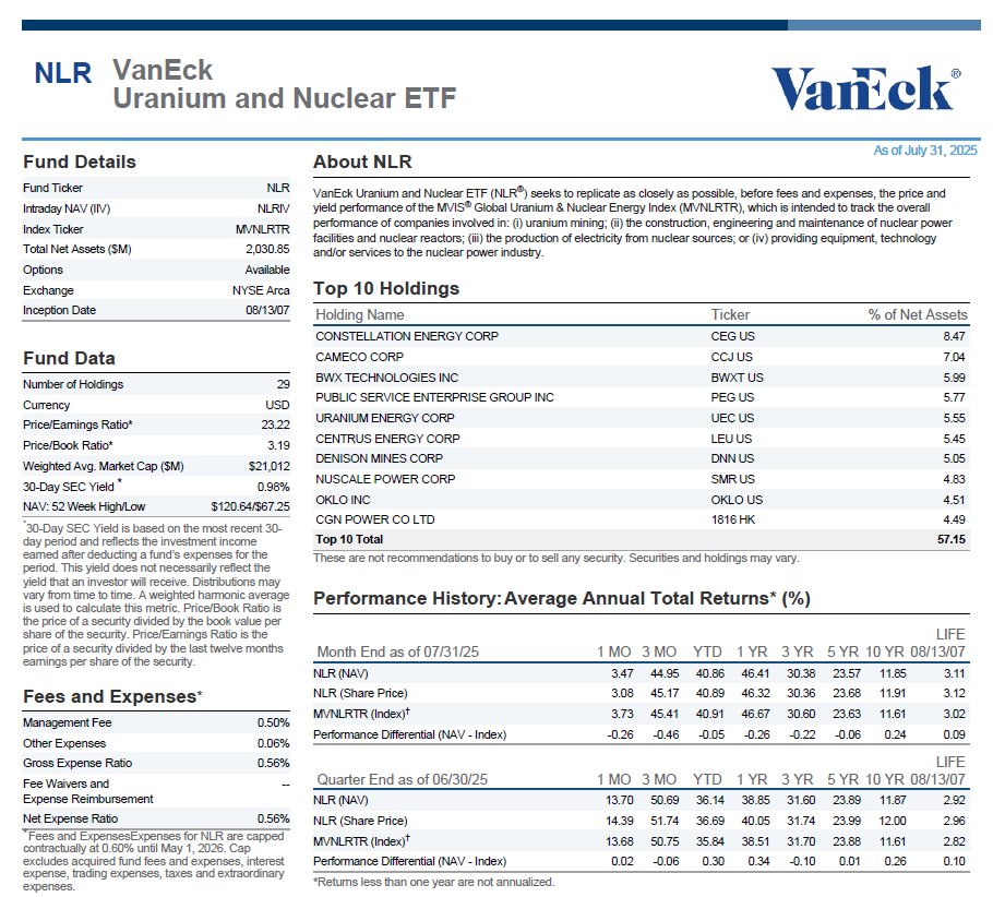 4)This year has seen soaring interest in the $2.4B AUM VanEck #Uranium and #Nuclear ETF ticker $NLR 🇺🇸 due to its exposure to #Nuclear utilities and new reactor developers that are gaining popularity on Wall Street, as well as major #Uranium #mining #stocks.⚛️⚡️⚖️⛏️🤠🐂🧵👇.../5