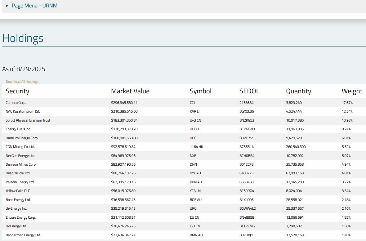 9)To build your own #Uranium #mining #stocks portfolio📂 of #U3O8 equities traded in #Canada, #USA, #Australia & #UK🛒 U could choose from the holdings of pure-play @Sprott Uranium Miners ETF $URNM 🇺🇸🇦🇺🇬🇧🛒⚛️⛏️🤠🐂 #Nuclear #investing #NetZero🏄♂️🧵👇.../10 sprottetfs.com/urnm-sprott-ur…