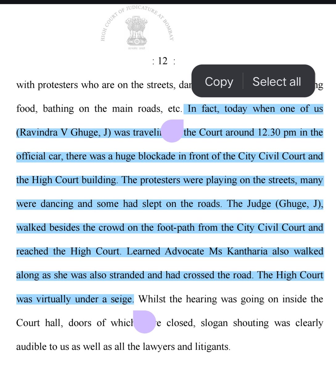 ACJ: We are also not satisfied with the State... We want to know what they were doing... How can your protestors compel a judge of this Court to walk on the street to reach his court and conduct proceedings ? You cannot force a HC judge to walk like this just because your protestors were dancing on the road.