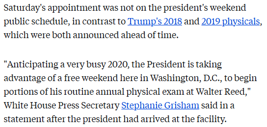 At the time, the Press Secretary said it was for his "routine annual exam" despite it not being on any schedules.
