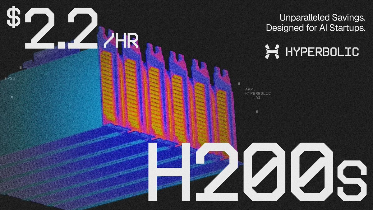 Hyperbolic now offers H200 GPUs at just $2.20/hour, rent 1 or 8xH200s, available on demand for all your AI workloads! app.hyperbolic.ai