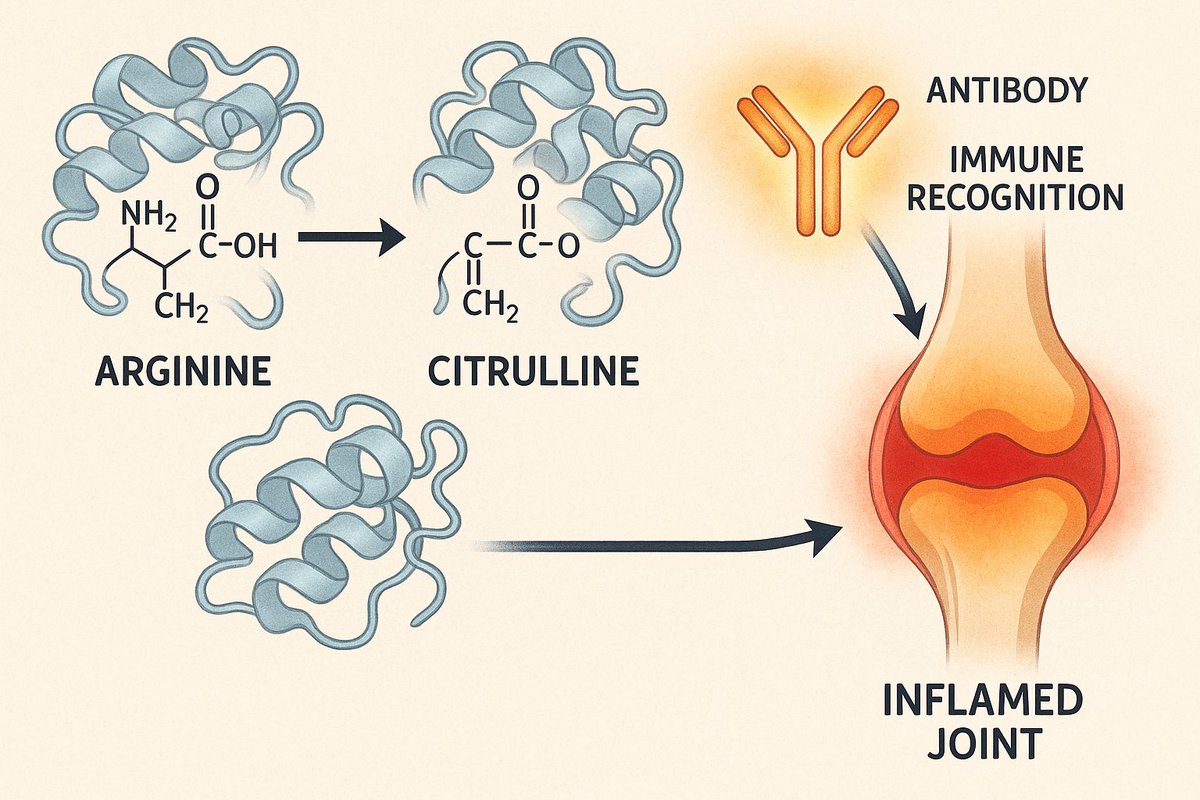 🔹 Autoantibody targeting citrullinated proteins (proteins where arginine is converted to citrulline).