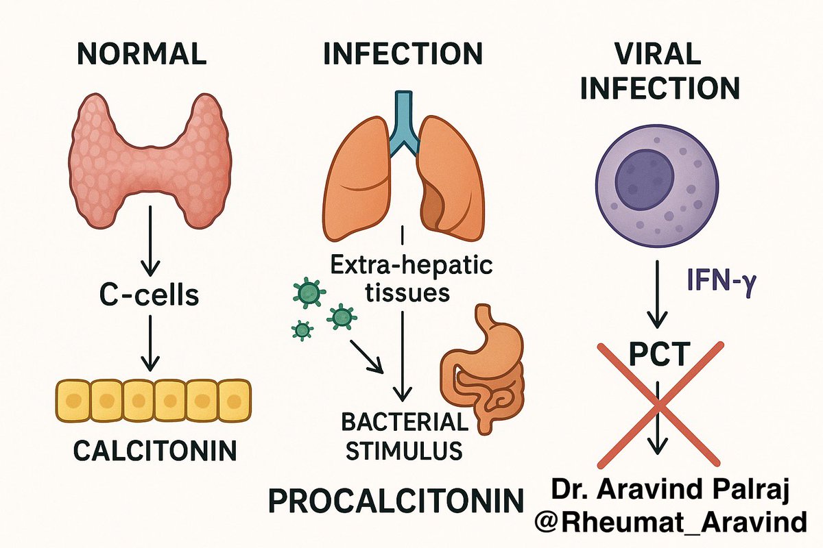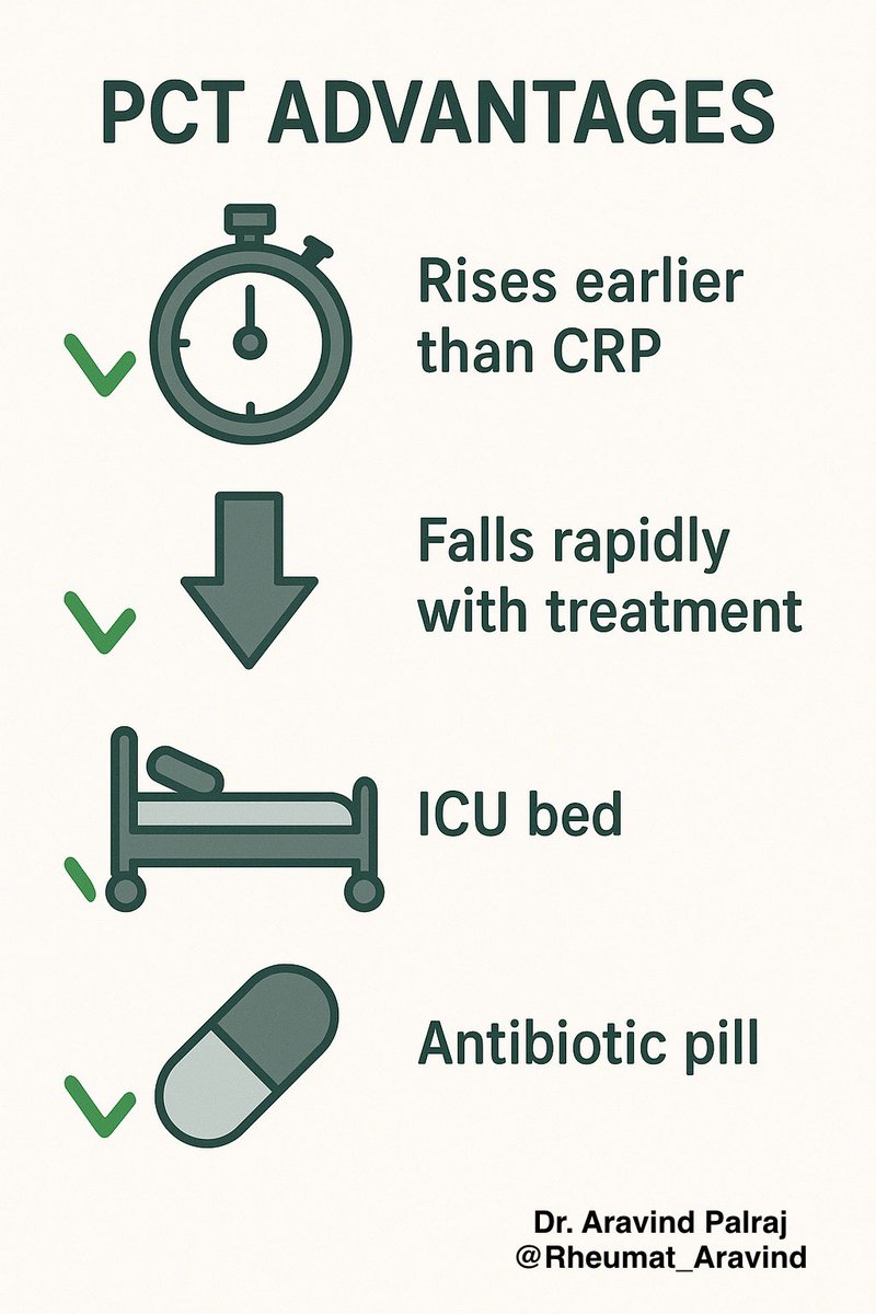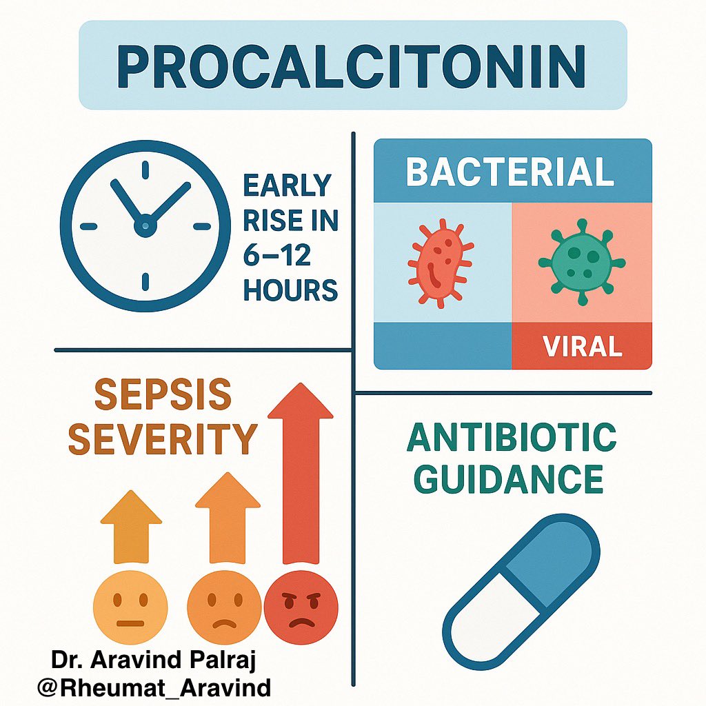 Procalcitonin- once just a peptide in calcitonin synthesis, now a powerful biomarker in infection & sepsis care. But when should we trust it, and when not? 🧵@IhabFathiSulima @DrAkhilX @CelestinoGutirr #MedTwitter #Rheumatology #ID