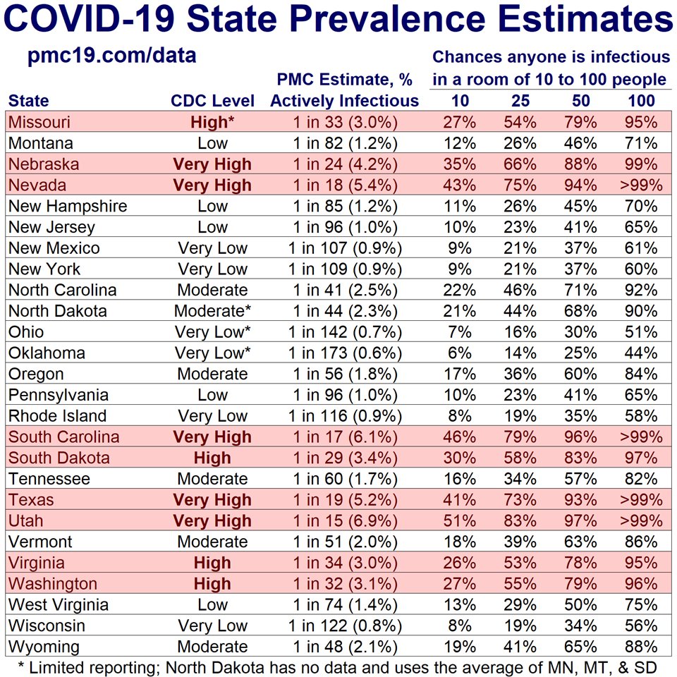 What's striking here is that you see some of the "Very Low" states like NY and NM are at nearly 1% actively infectious.