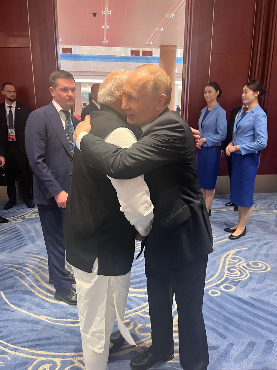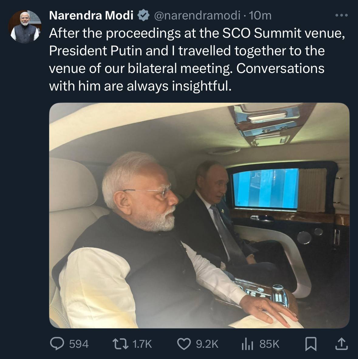 3/ Putin must have told a strong joke where Modi laughed hard..