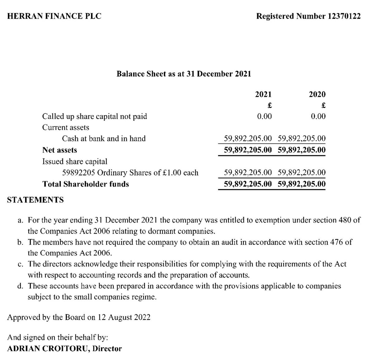 Let's look at Herran Finance plc's last accounts.
