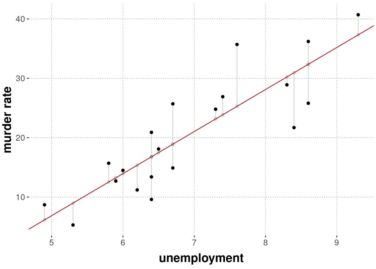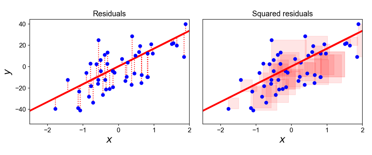 OLS does this by minimizing the sum of the squares of the differences between the observed dependent variable values and those predicted by the linear model. These differences are called "residuals."