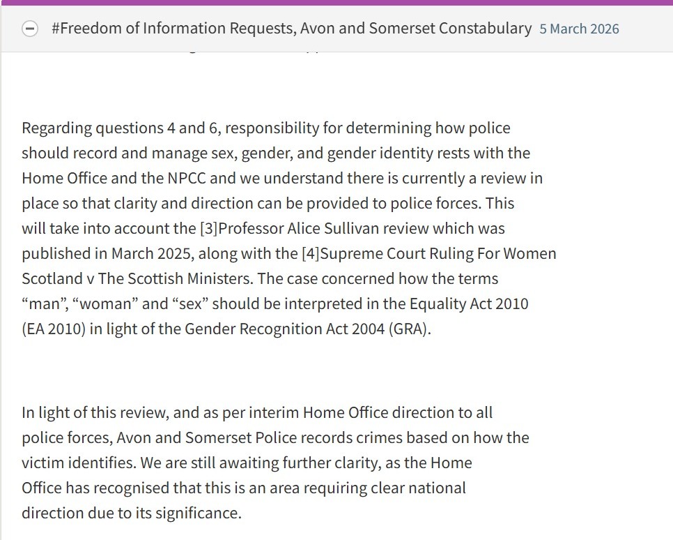 Despite the alleged perpetrator and the victim being men, Avon and Somerset Police @ASPolice will record the below reported incident as a female crime, committed by a woman against a woman. 1/