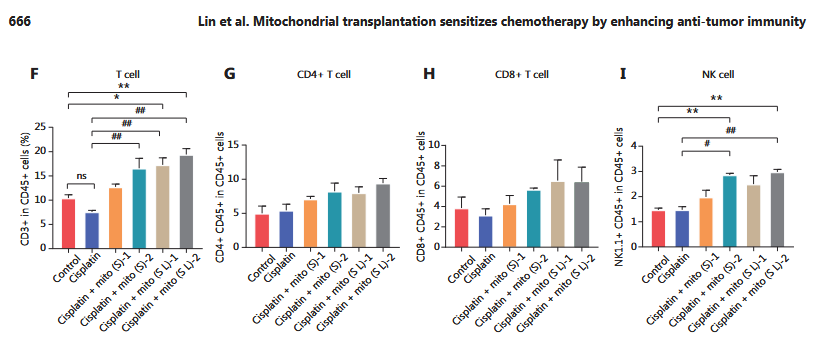 While chemo (cisplatin) worsened anti-tumor immunity, the healthy mitochondria increased: